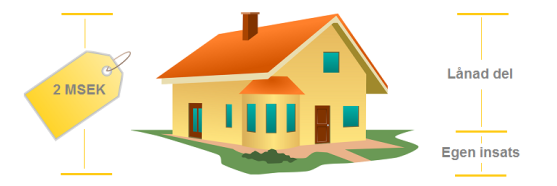 Du vill köpa ett hus för 2 milj kronor. Du har 500 000 kr i eget kapital att sätta in och behöver därmed låna resten, dvs 1,5 MSEK kronor: