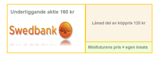 Istället för att köpa SWED-aktien för 160 kr kan vi köpa en minifuture med 4 ggr hävstång och bara betala 40 kr. Vi har ändå samma position i marknaden.