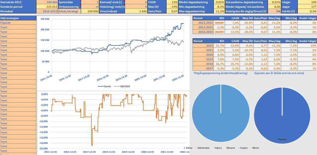 Flipside är ny i Crash Pack-paketet med blankningsstrategier i Nordic Autotrading Society Select. Strategin blankar krypto-trackers på testkonto och positionen replikeras som vanligt via lämplig minifuture till skarpa kontot.
